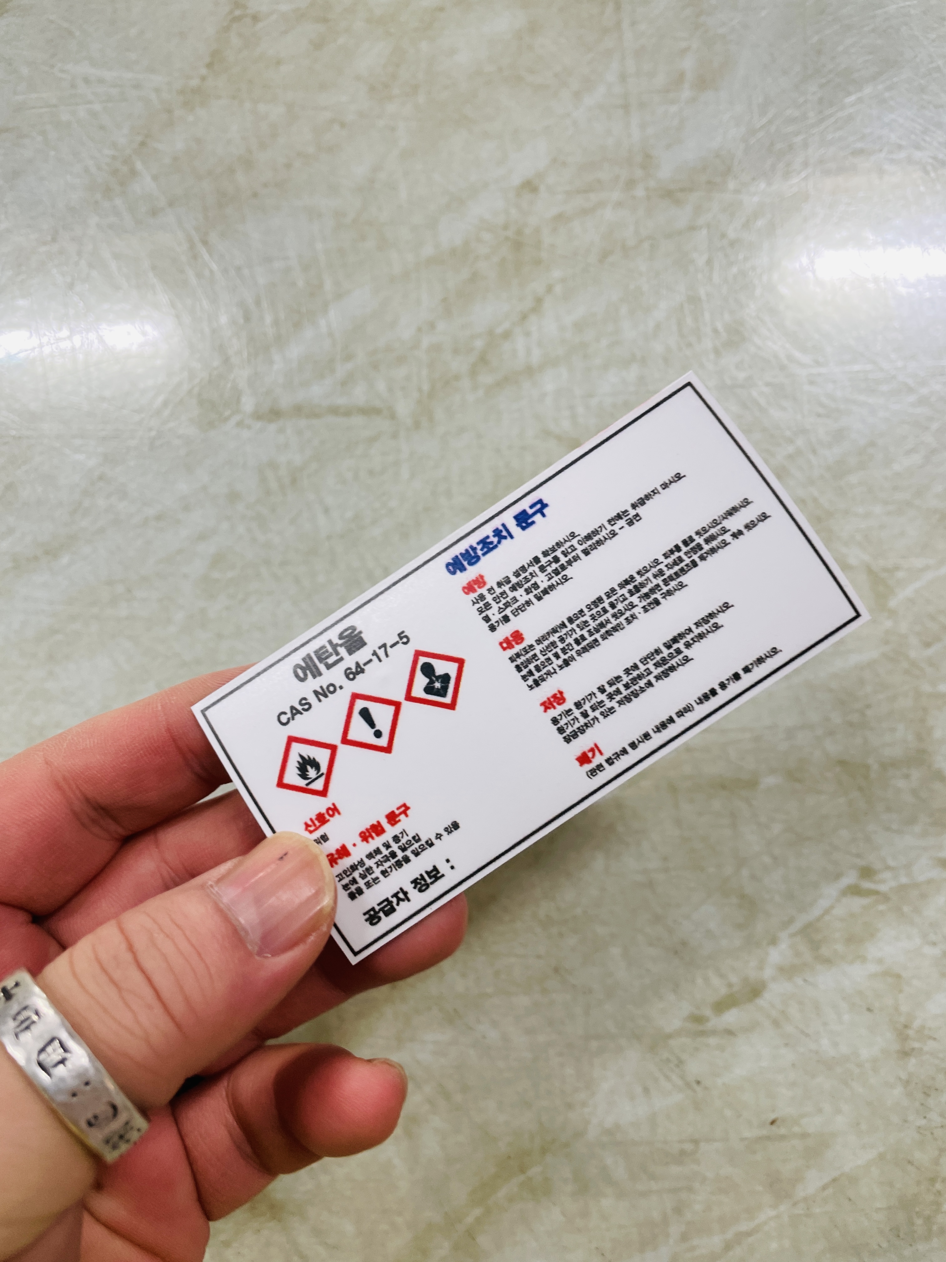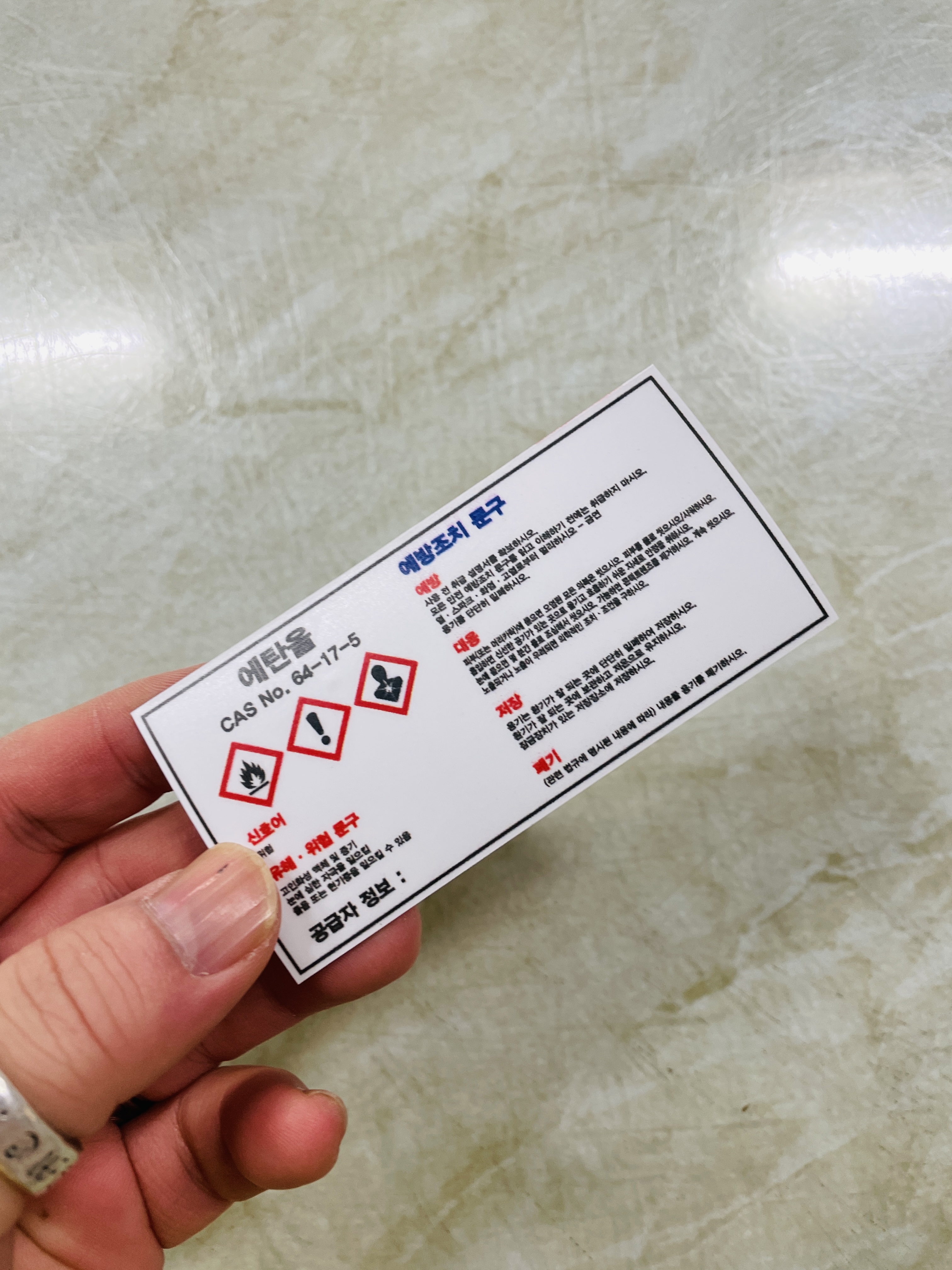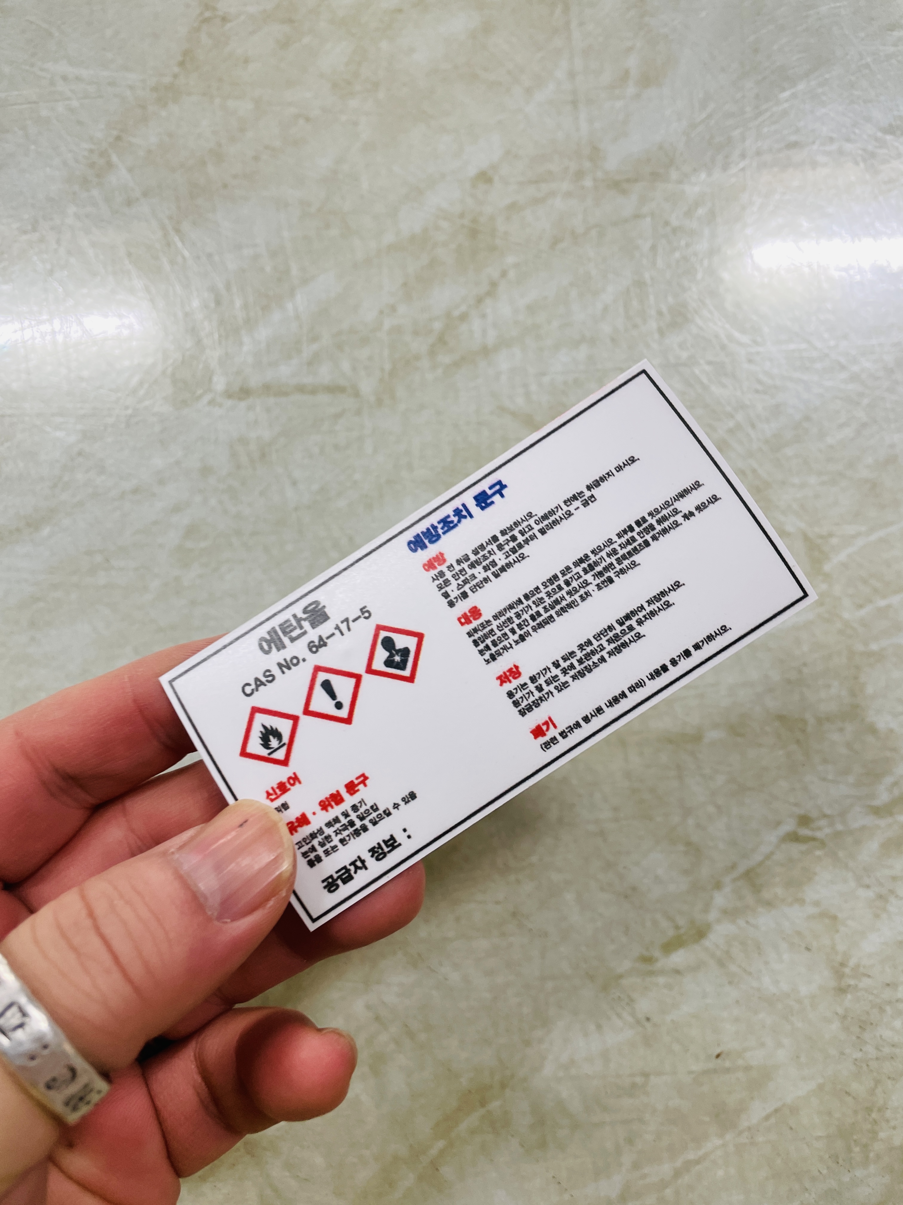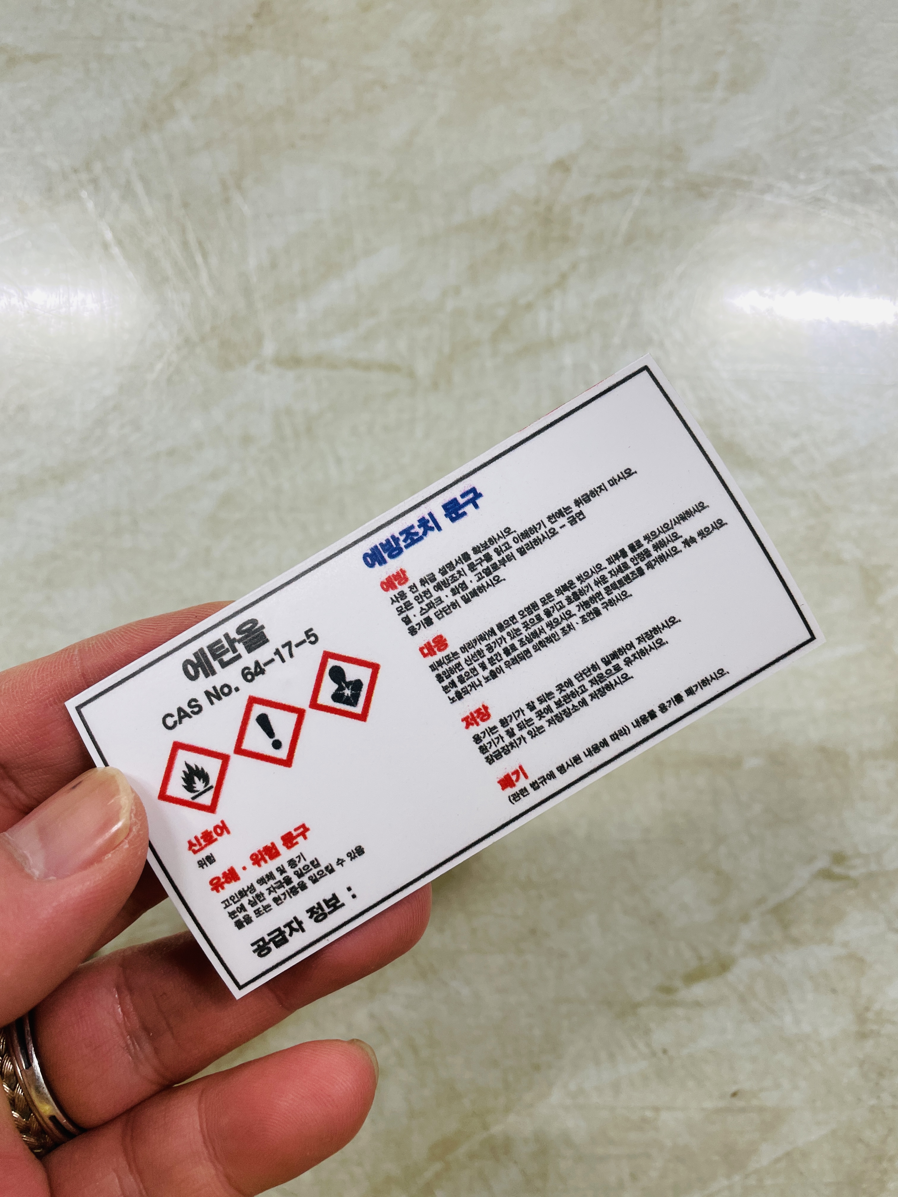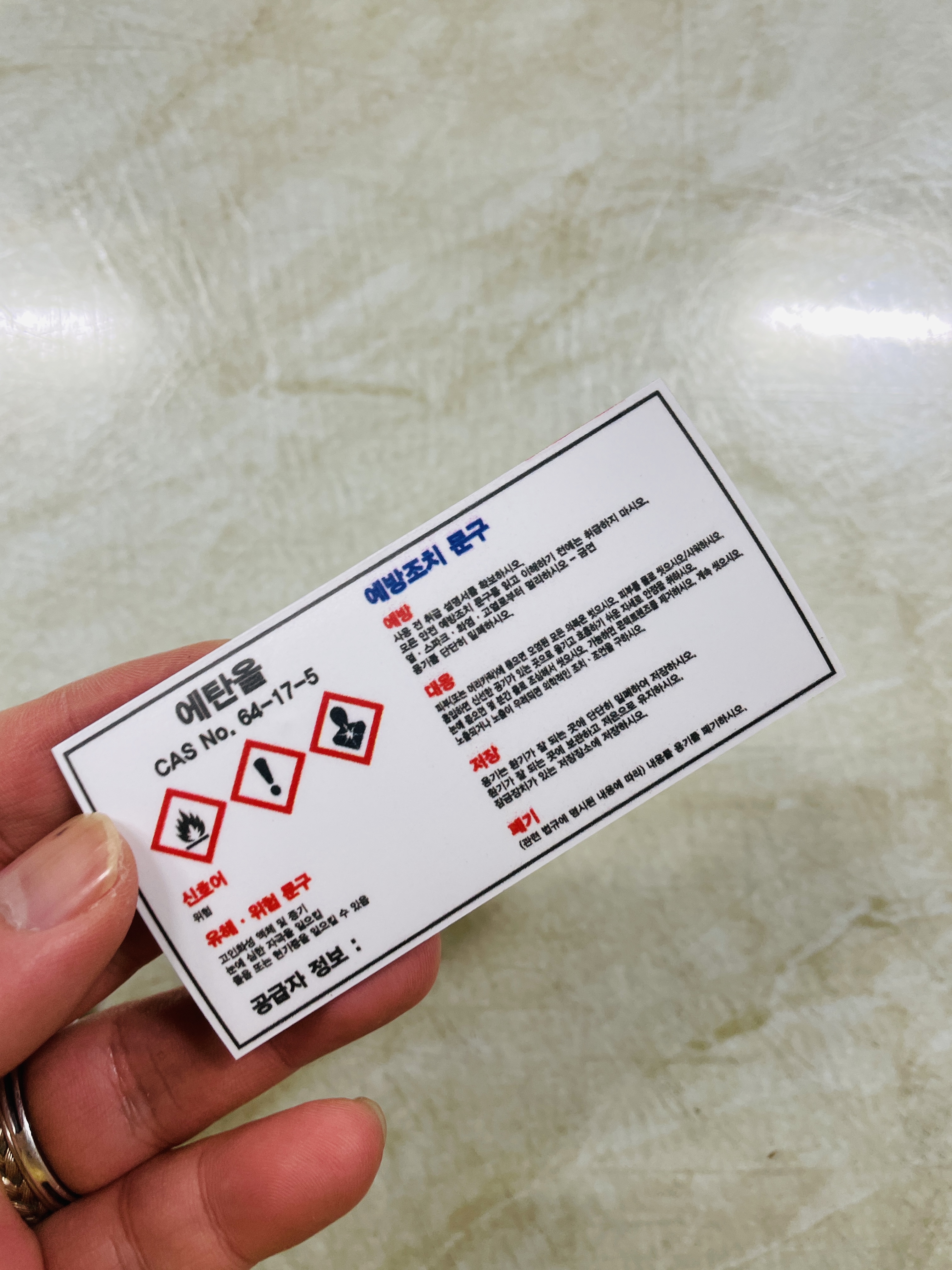MSDS 에탄올 64-17-5 소량용기 스티커 표지판 자석 : 베사메무쵸