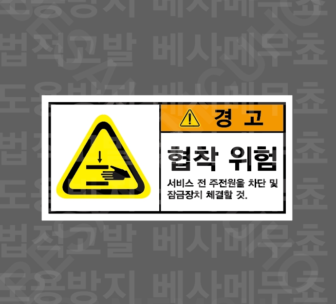 고압 전류 위험 허가된자 외 접근금지 항시 통전중 돌걸릴위험 발밑 케이블 주의출위험 발 밑을 조심하시오 걸릴위험 발 밑 배관 주의 돌출위험 머리를 조심하시오 센서확인 운전 중 접근 금지 잠금확인 DOOR 개방시 전원이 차단됨 취급주의 회전부 제품 취급시 주의 전원차단 전원차단후 작업할것 호흡용 보호구착용 출입시 방독면 착용 X-ray노출위험 전원차단 작업 후 전원차단 할것 식수금지 식수로 적합하지 않음 열쇠제거 미운행시 열쇠제거 열쇠제거 설비점검시 열쇠 제거 매달린 물체 주의 물체아래로 이동금지 회전체 주의 신체또는 물체를 넣지 마시오 회전체 주의 물체를 넣지 마시오 끼임주의 설비 작동중 접근금지 자외선 노출위험 작업전 보호안경 착용 자외선 주의 광원 직시 금지 협착 위험 작동중 접촉금지 협착 위험 협착 위험 구동 중 손을 넣지마시오협착 위험 작동 중 개방금지 협착 위험 주전원 차단 및 잠금장치 체결 넘어짐주의 화상주의 uv-a자외선 발생지역 개구부 주의 이산화탄소 호흡용 보호구 착용 화기금지 화재 및 폭발 위험 1000매 산업 안전 보건 표지
