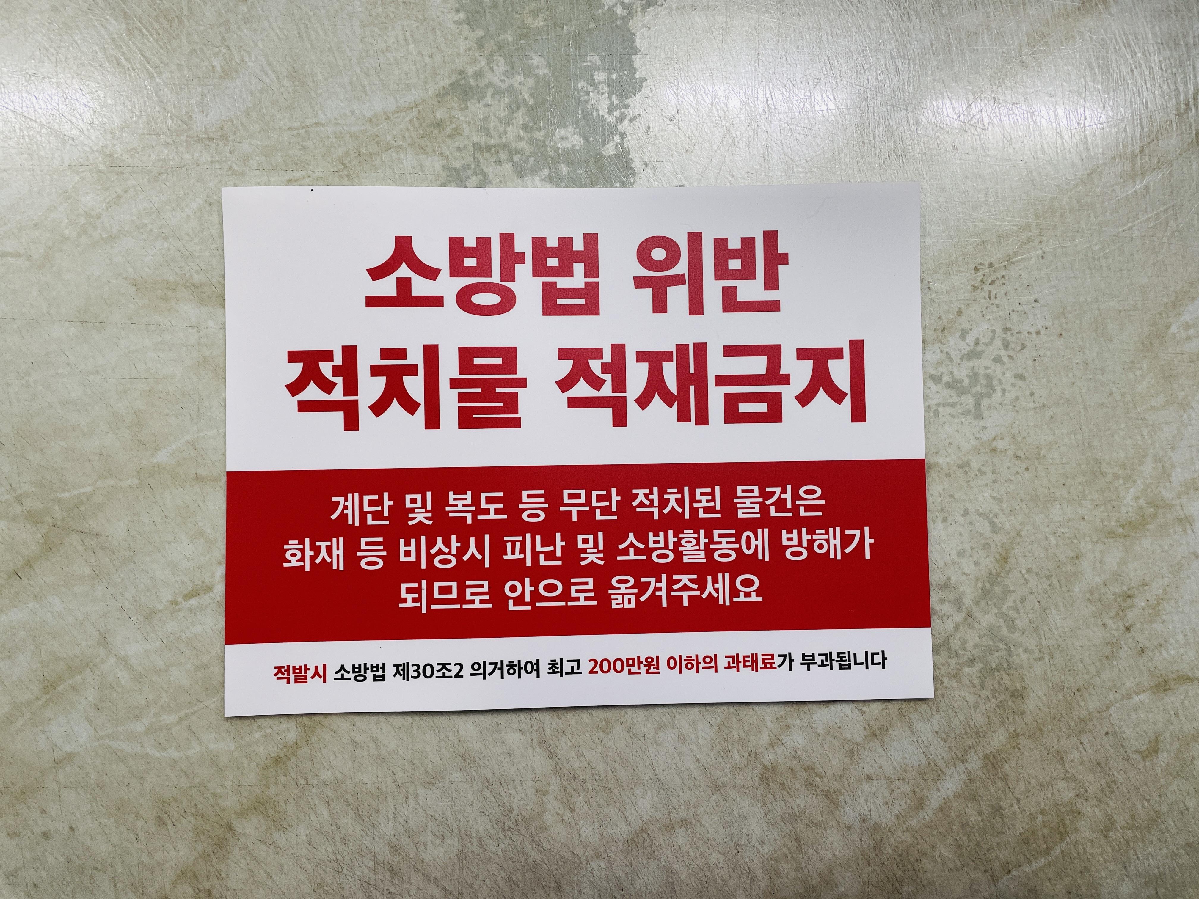 소방법 위반 적치물 적재금지 계단 및 복도 등 무단 적치된 물건은 소방법 과태료 부과 AK477 13510