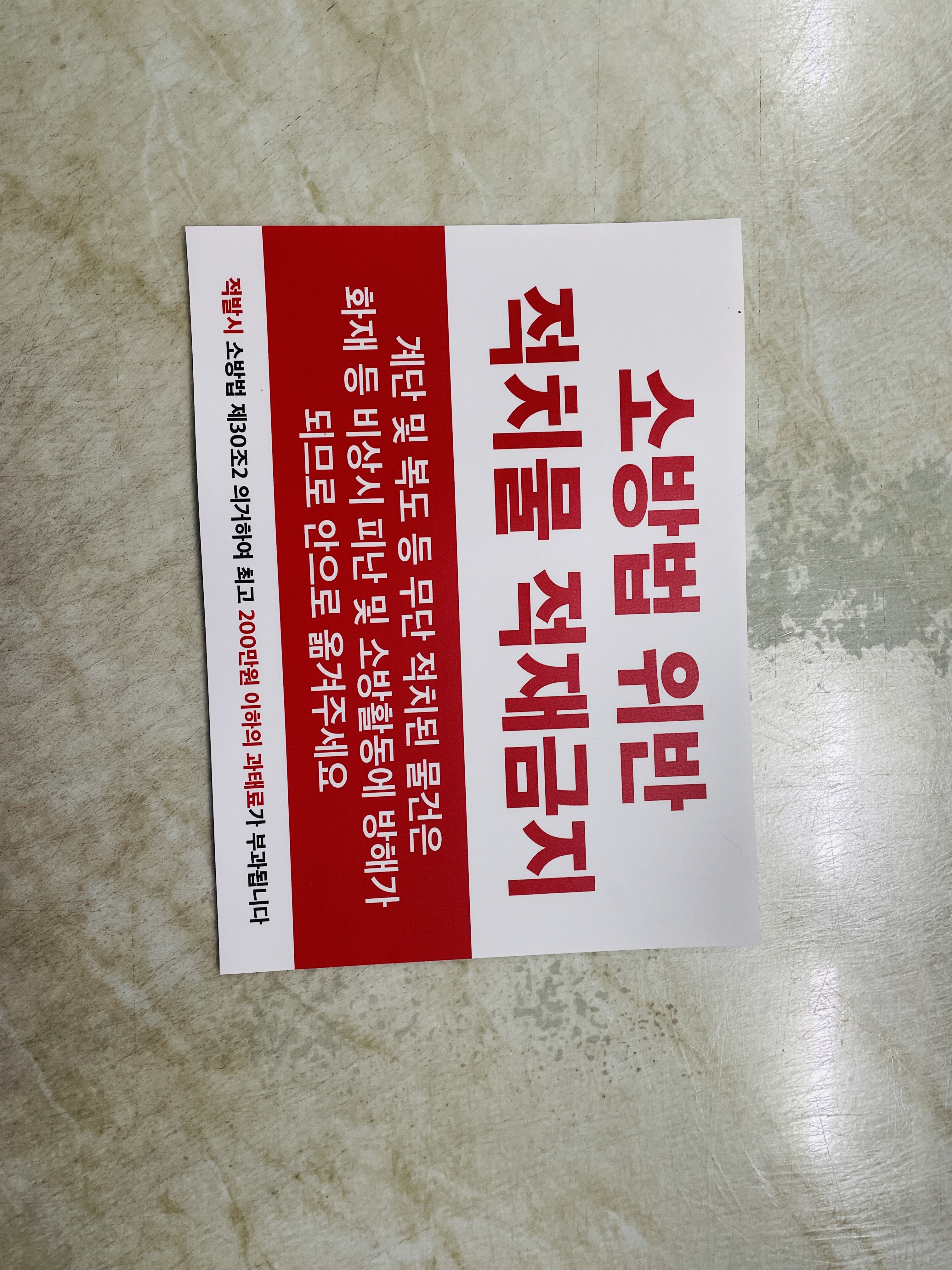 소방법 위반 적치물 적재금지 계단 및 복도 등 무단 적치된 물건은 화재 등 비상시 피난 및 소방활동에 방해가 되므로 안으로 옮겨주세요 스티커 표지판 자석 안전 산업 표시 표지
