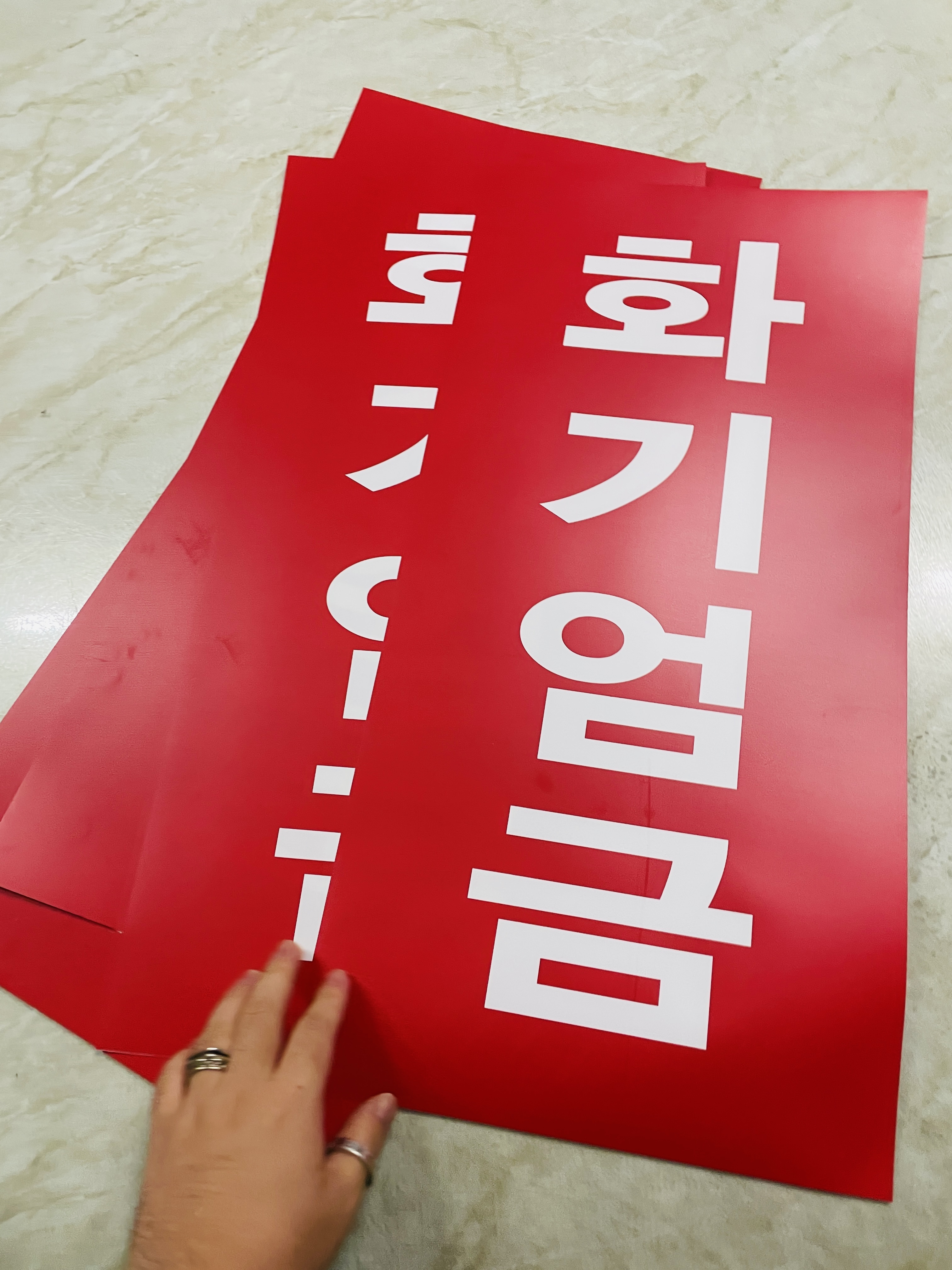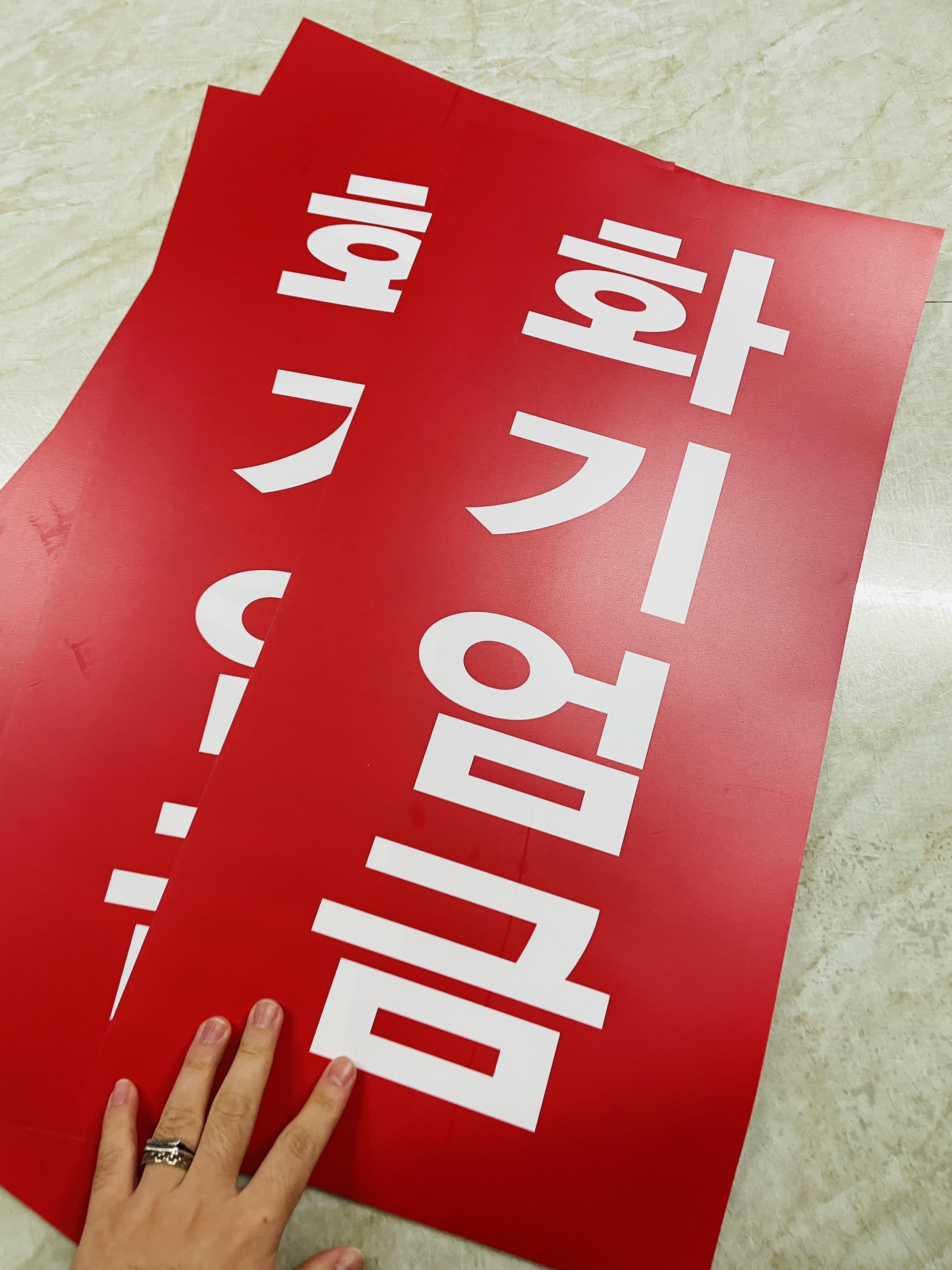 주유소안내 주유중엔진정지 화기엄금 주입구 위험물 산업스티커 1번 화기엄금 600X300mm : 베사메